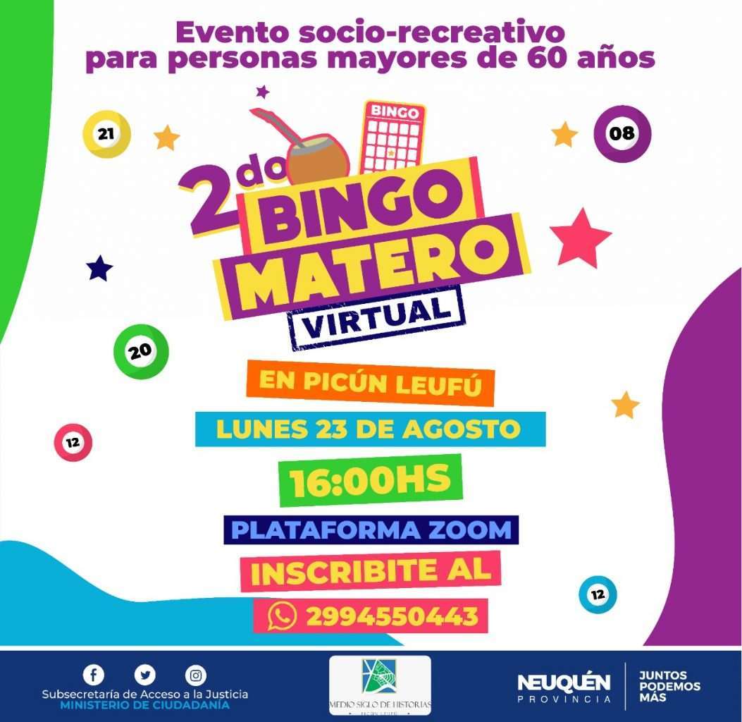 Esta actividad pensada para nuestros adultos mayores se realiza desde la Subsecretaría de Acceso a la Justicia en conjunto con la Municipalidad de Picún Leufú. Los invitamos a compartir una buena tarde de bingo y sorteos para divertirnos. Si sabes de algun adulto mayor que quiera participar, ayudalo a inscribirse, allí les enviaremos videos explicativos […]