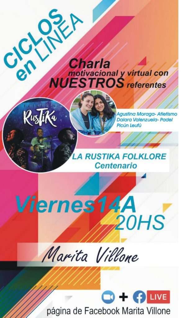 La Diputada Marita Villone encabezará esta tarde (14 de agosto) a partir de las 20 horas por su pagina de facebook, una charla virtual motivacional con referentes provinciales. En esta ocasión, dialogará con las atletas picunenses Agustina Moraga (atletismo) y Daiara Valenzuela (paddle). Te invitamos a ver y escuchar lo que tienen para contarnos, solo […]